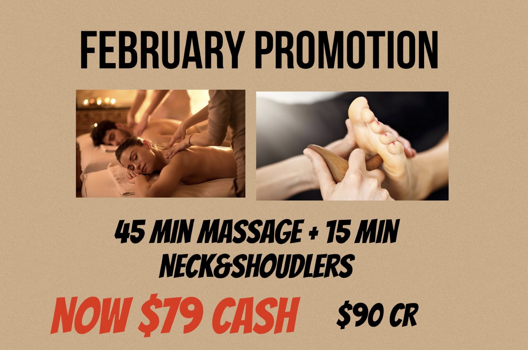 Tuesday and Saturday Promotion 120 min Aroma Oil Massage ( you can separate body and foot massage ) Now $129 Cash / $135 CR
